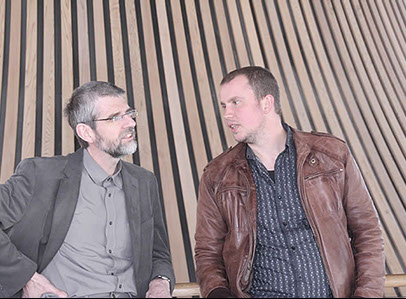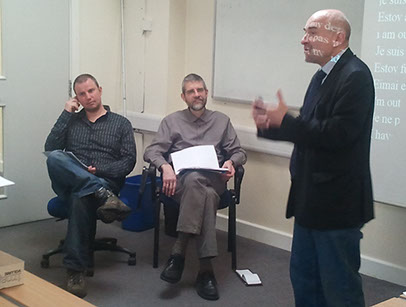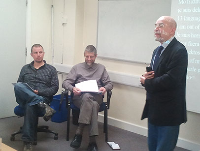 Philip Gross and Tsead Bruinja and Glenn Davidson at TransEuropa Festival Cardiff with the participation of the Cardiff School of European Studies)