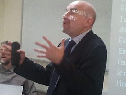 Mit dem Übersetzungs-Workshop stand aus der Autorenperspektive am Anfang ein großes Vergnügen. Nichts ist schöner für den Schreiber von Gedichten, als an der Arbeit des Übersetzens aktiv, als Gesprächspartner teilnehmen zu können und ihre Ergebnisse, die Neudeutung des Textes in der Zielsprache zu goutieren. Die Studierenden, die sich anhand von wörtlichen Annäherungen je eines Gedichts von Pietraß und Kolbe annahmen, repräsentierten auf dem engen Raum des Seminars sechs Sprachen – Arabisch, Englisch, Französisch, Katalan, Kurdisch und Spanisch. Es war eine Freude, die Texte – selbstverständlich vorläufige Fassungen – am Schluss des forcierten Geschehens in den verschiedenen Sprachen zu h ö r e n . Die Auseinandersetzung mit sprach- und kulturbedingten Problemen, etwa der Konnotation eines Begriffs, die rasch erreichten und zu überschreitenden Grenzen des wortwörtlichen Übertragens erweitern nicht nur Horizonte des Dichtens, sondern grundsätzlich des jeweiligen Sprachverständnisses. Eine perfekte Übung auch für diejenigen, die nicht das literarische Übersetzen zum Beruf machen werden. Vielleicht eine Anregung für manche, es ins Auge zu fassen.